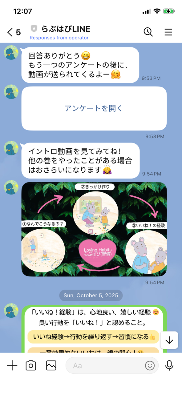 • LINEで子育てのヒントがアニメ動画とメッセージで届きます。それを観てTRY!